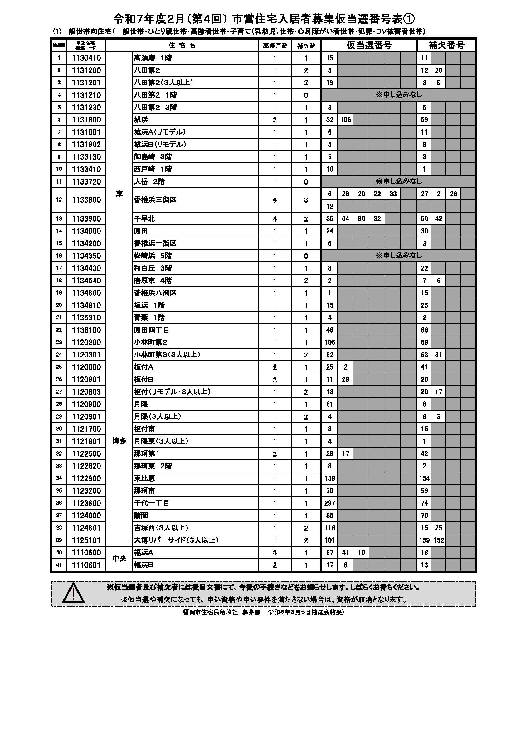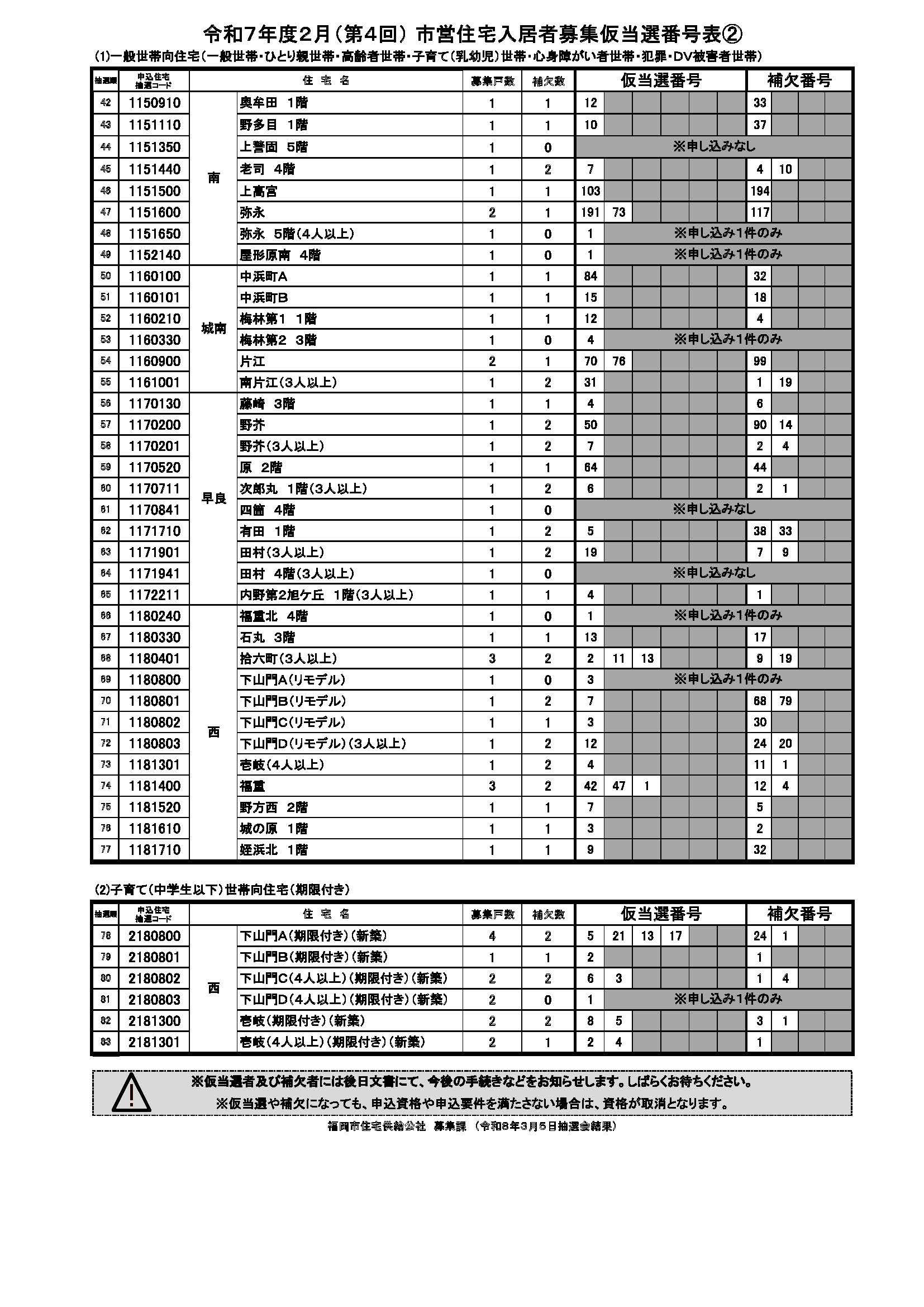 令和7年度2月募集≪抽選方式≫の抽選結果について